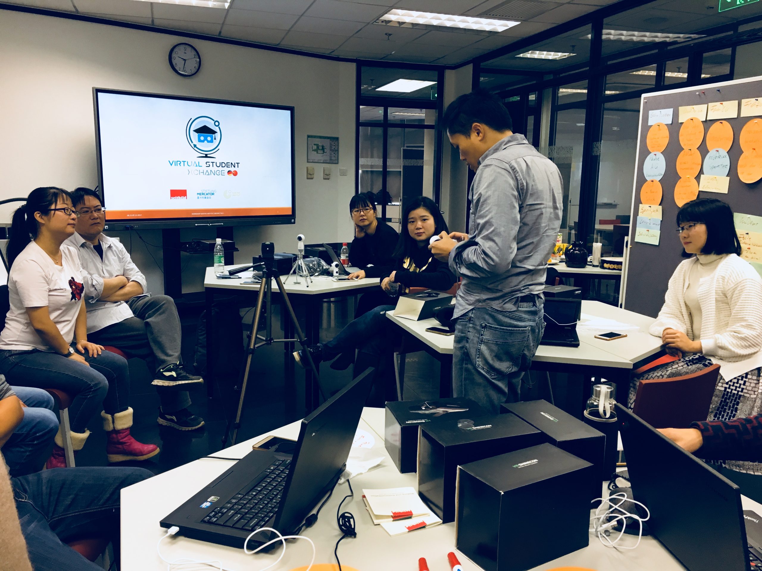 Mit Hilfe von selbst erstellten 360-Grad-Video bereichern Schulen in Deutschland und China ihren Schulaustausch. Das innovative digitale Bildungsprojekt im Auftrag der Stiftung Mercator wird vom Goethe Institut Peking unterstützt. In Workshops in China und Deutschland machen sich Lehrkräfte mit der 360-Grad-Videotechnik vertraut und diskutieren didaktische Konzepte zur Einbindung dieser Technik in den Unterricht.